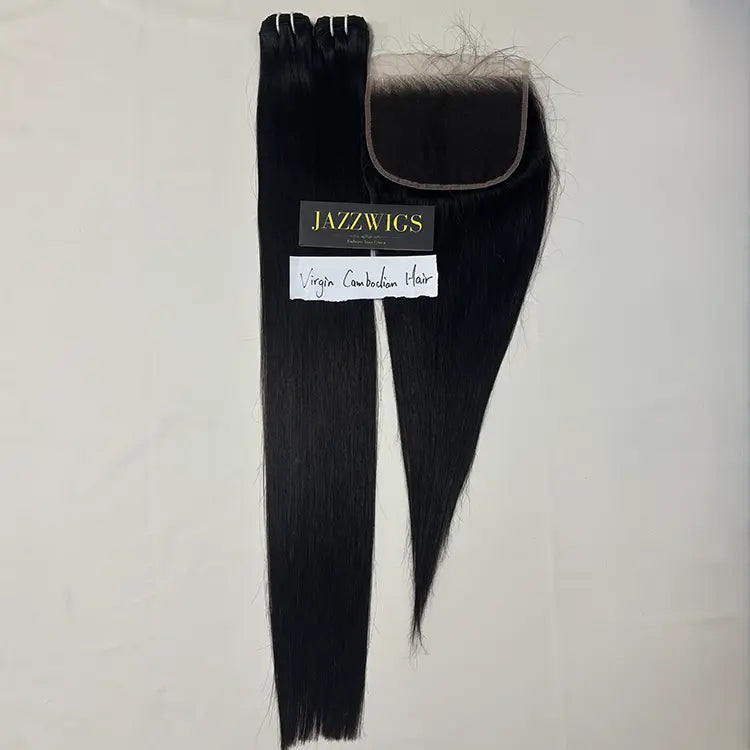 Virgin Cambodian Straight Hair 2 Bundle Deal with 7×5 HD Lace Closure