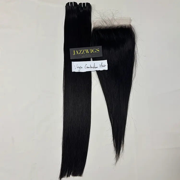 Virgin Cambodian Straight Hair 2 Bundle Deal with 7×7 HD Lace Closure